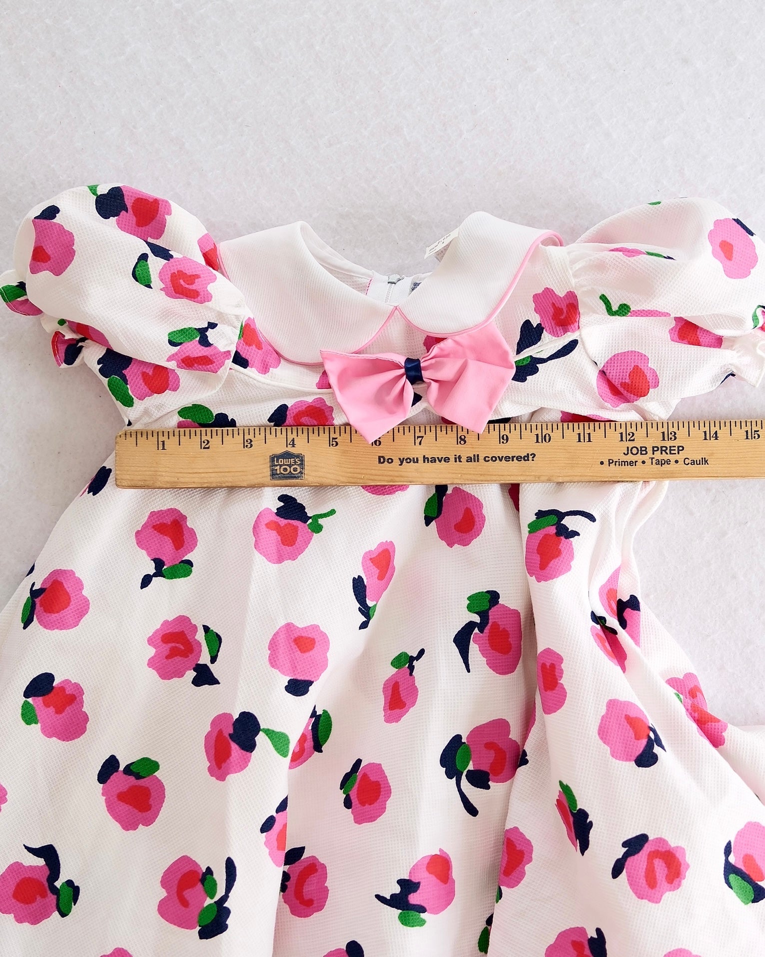 Vintage Bryan white and pink flower print short sleeve dress with pink bow and twirly skirt