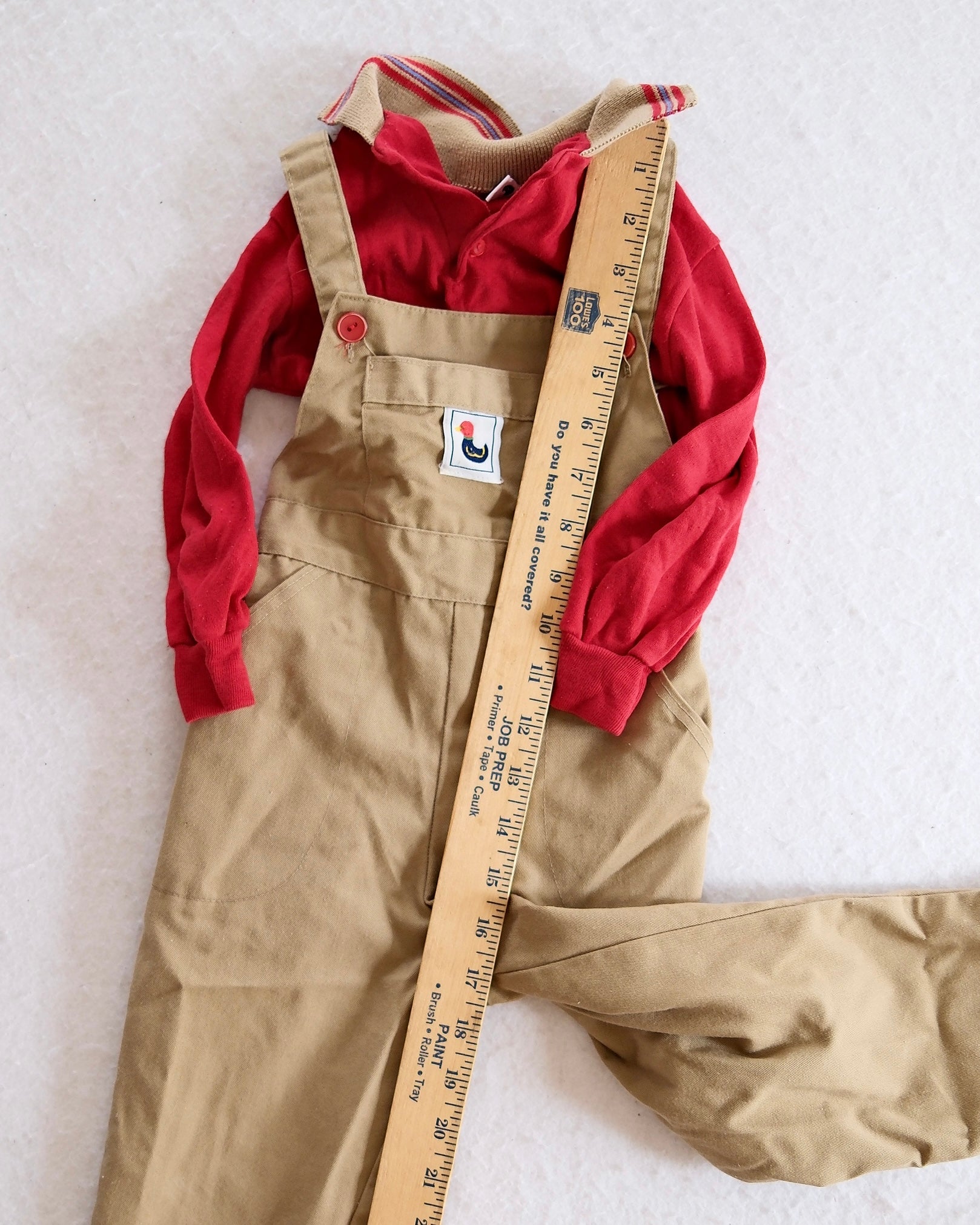 Charming 1980s tan romper and burgundy polo set in size 3T, featuring a sweet mallard duck patch detail. Unknown brand but similar to Healthex or Garanimals. The romper shows light pilling on the top and natural wrinkles from storage, adding to its authentic vintage character. Perfect for a child who loves animals!