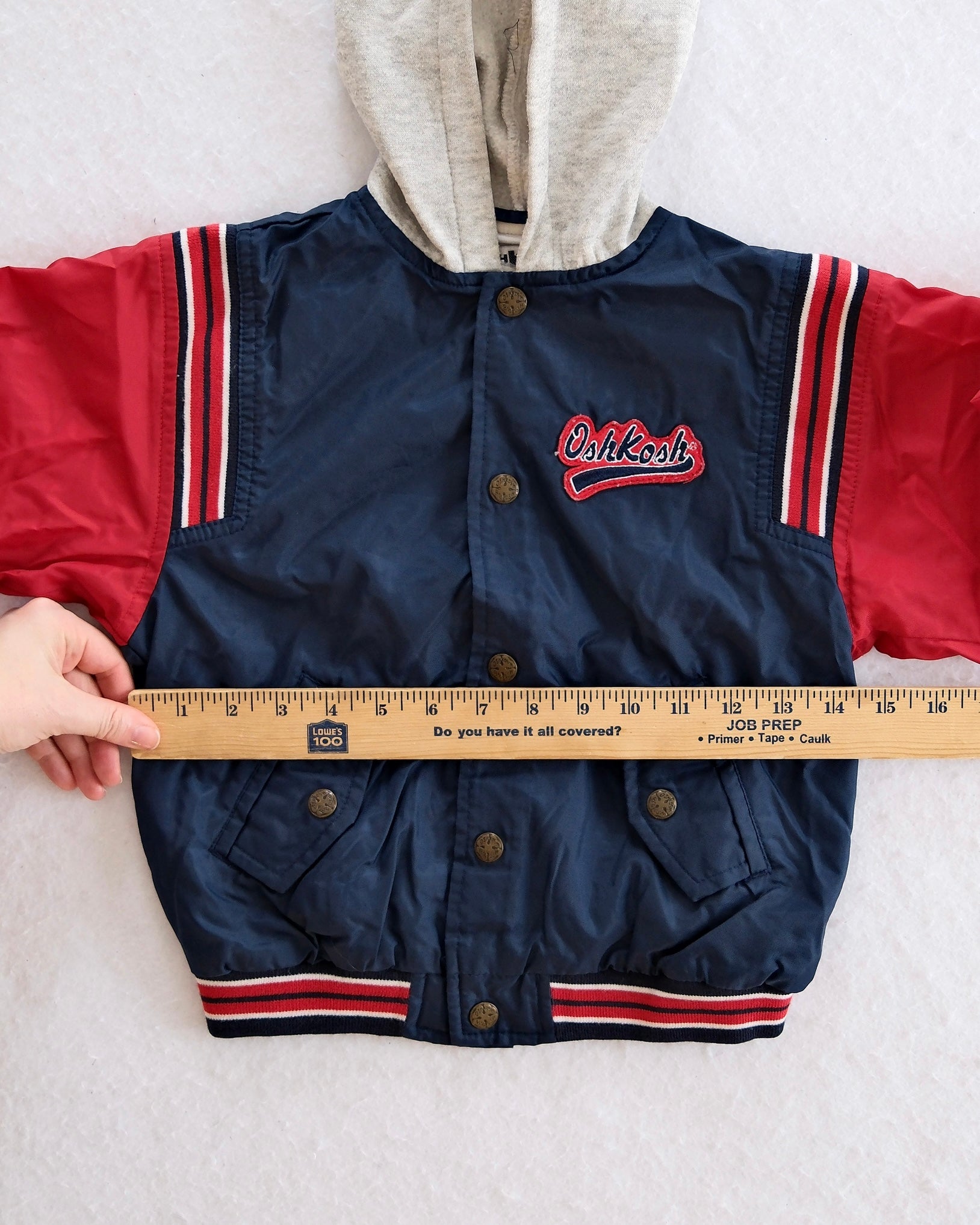 Vintage OshKosh B’gosh Red & Navy Hooded Varsity Jacket: 7y