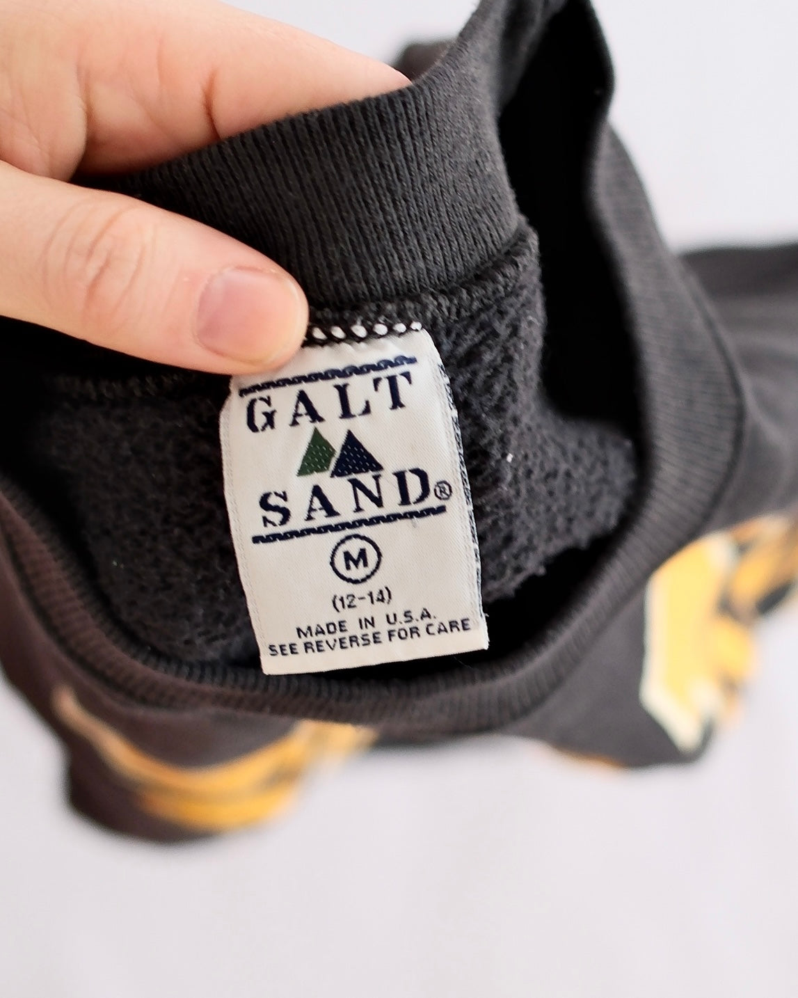 Vintage Purdue Boilermakers youth sweatshirt in black with bold gold and white graphic, tag size M (fits approx. youth 12–14). Soft fleece feel with classic collegiate styling. May fit 12y best.